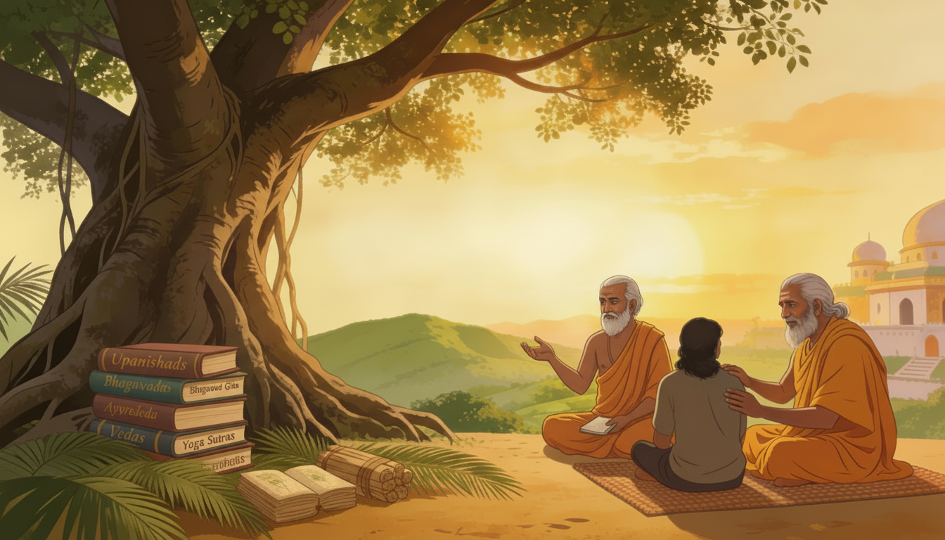 Grounded in texts such as the Upanishads, Bhagavad Gita, and Yoga Sutras, it emphasizes self-awareness, balance, and resilience through practices like Trikarana Shuddhi (harmony of thought, word, and action) and Yoga Nidra.